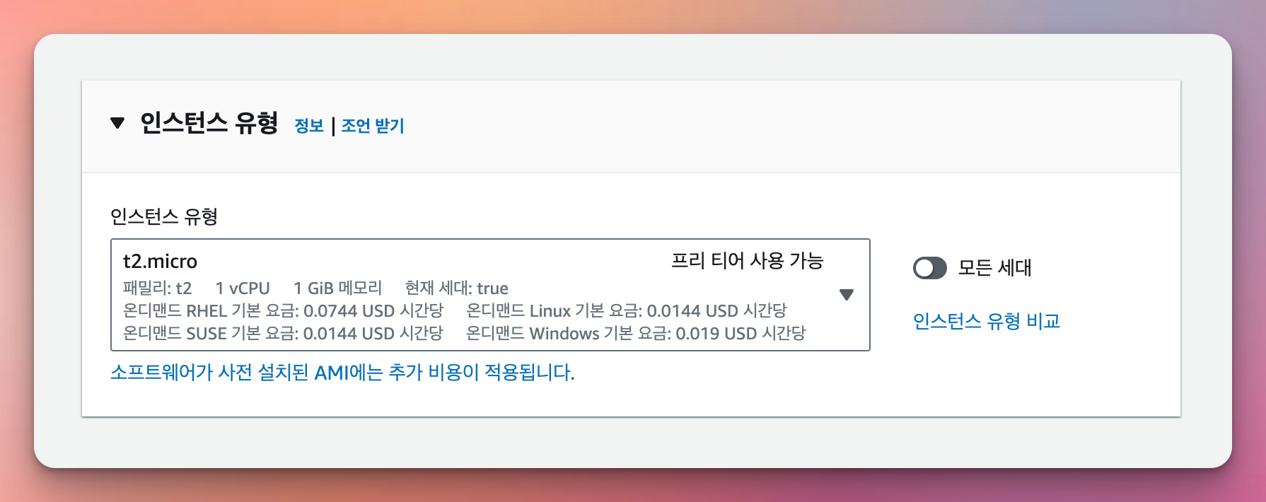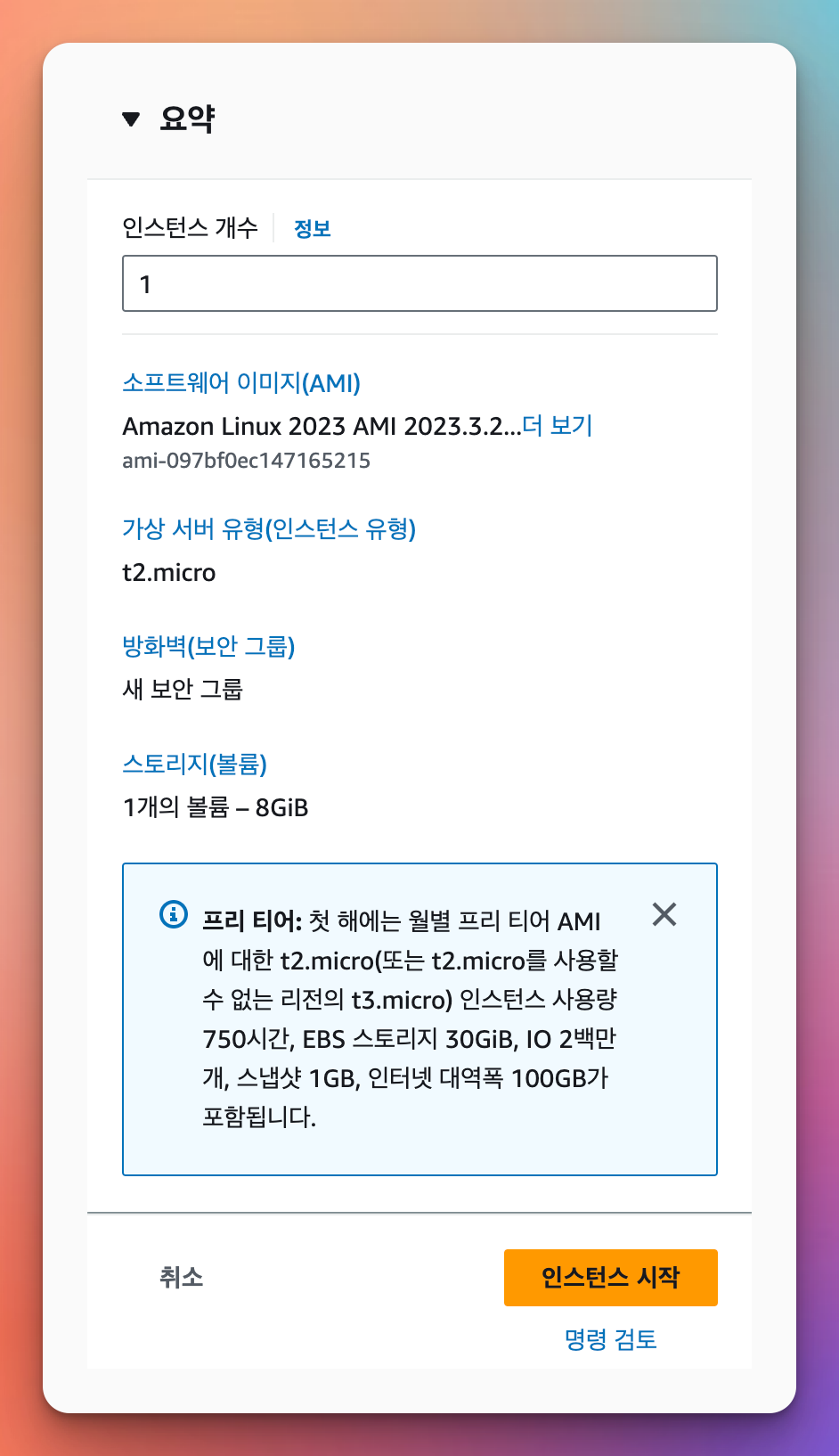 - 인스턴스 유형 : t2.micro
