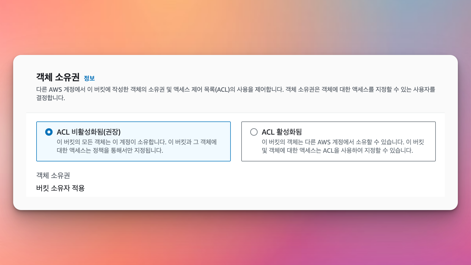 ACL 비활성화됨(권장)