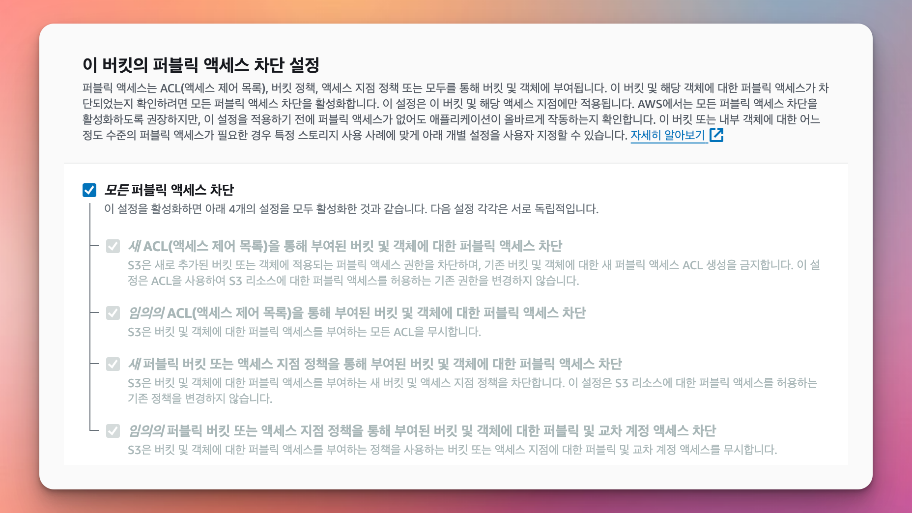 이 버킷의 퍼블릭 액세스 차단 설정
