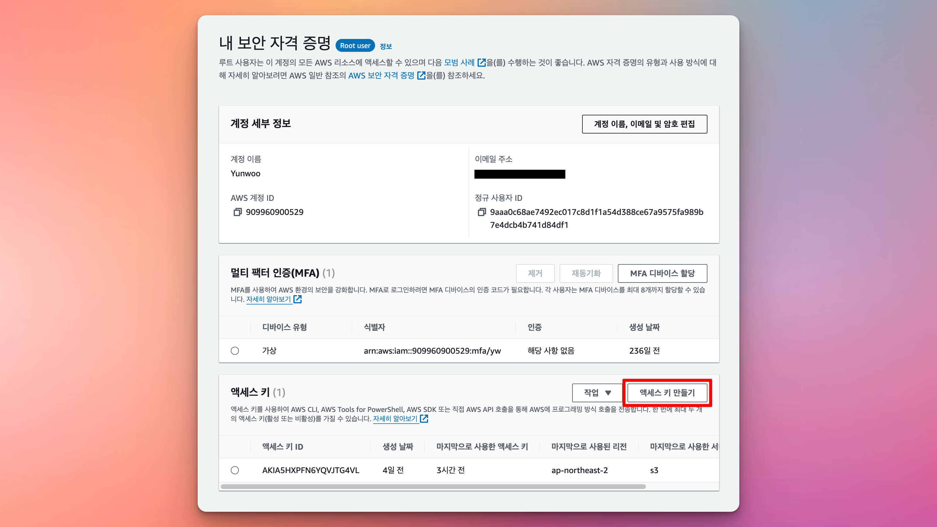 Access Key 만들기