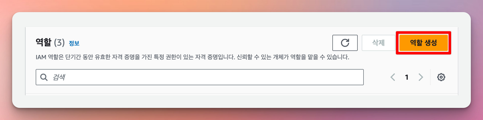 역할 생성 클릭