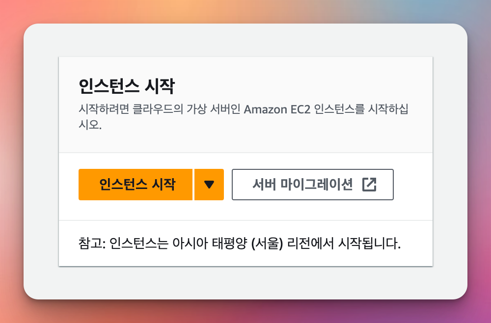 주황색으로 강조되어있는 인스턴스 시작 버튼을 클릭합니다.