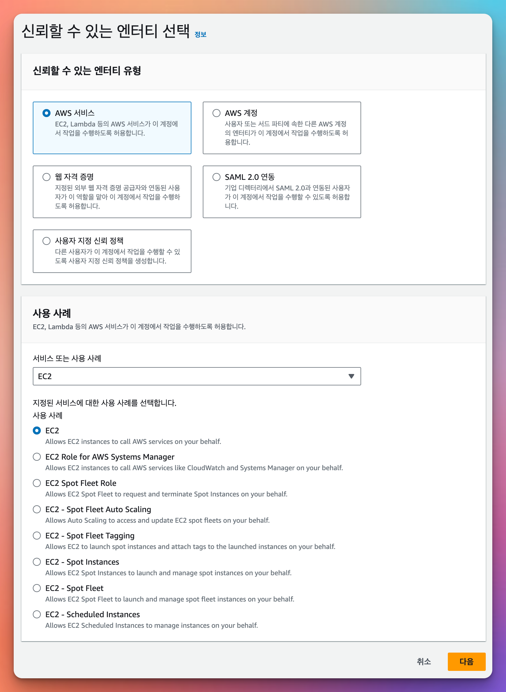 신뢰할 수 있는 엔터티 유형 : AWS 서비스