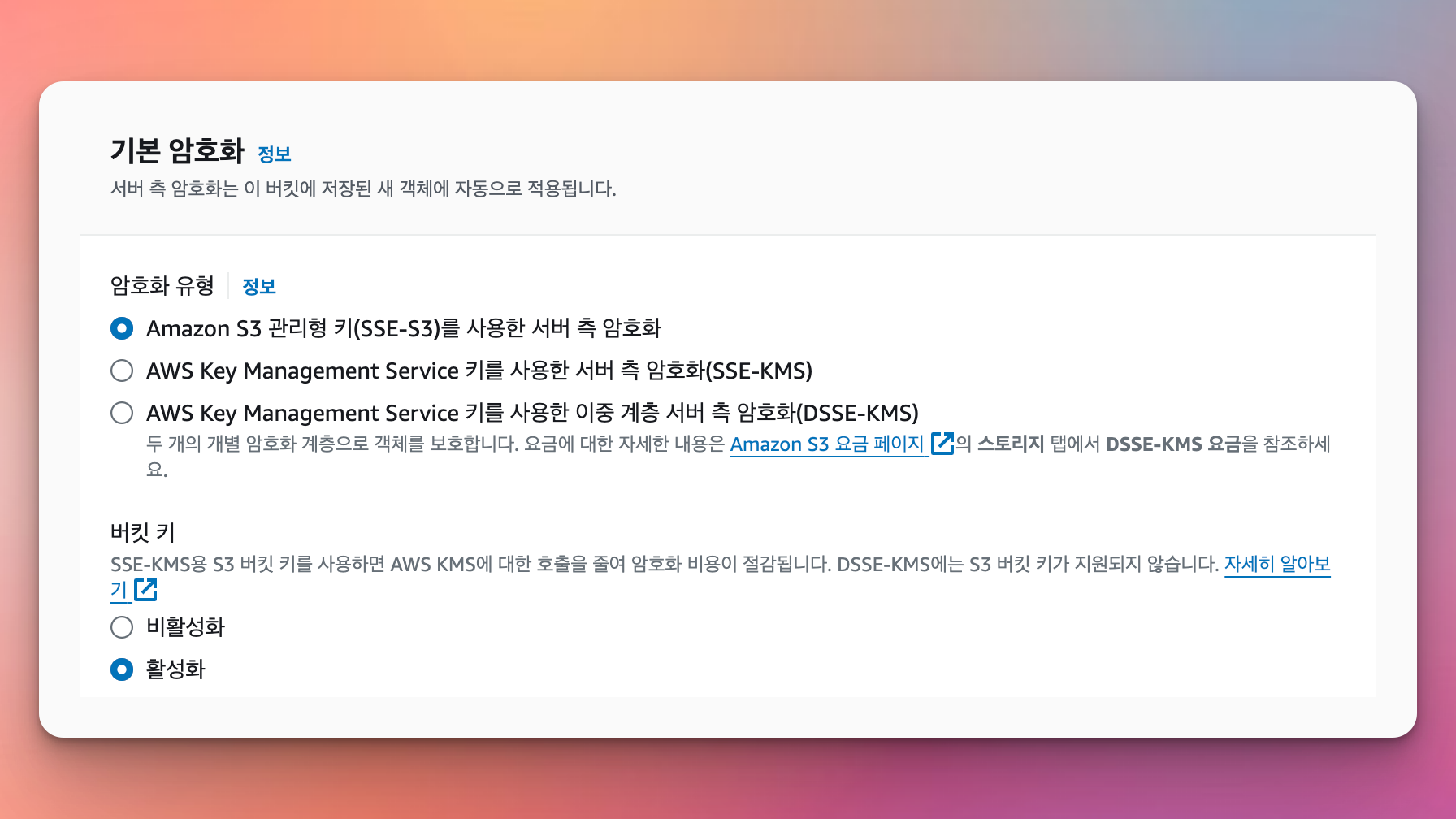 버킷 키 : 활성화