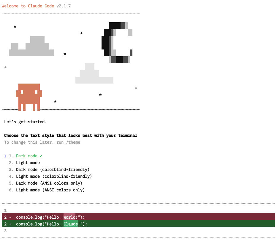 설치가 완료되면 claude 명령어를 통해 Claude Code를 실행할 수 있습니다.