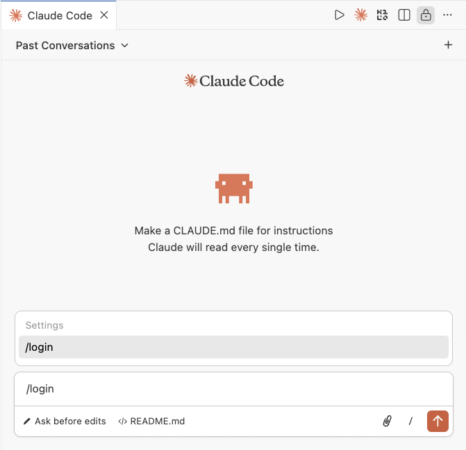 설치가 완료되었으면 우측 상단의 Claude 아이콘을 클릭하여 Claude Code 세션을 시작할 수 있고, CLI 환경과 마찬가지로 최초에는 로그인을 진행해야 합니다.