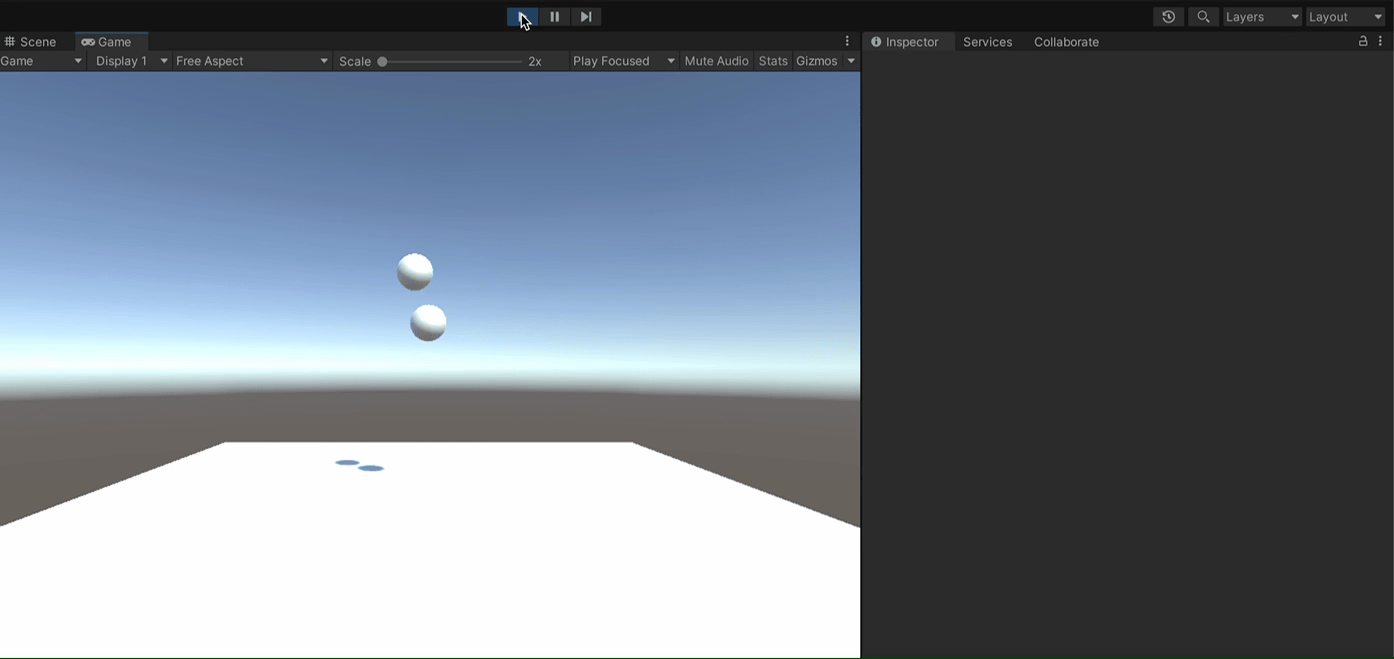 RigidBody 컴포넌트의 Mass를 높은 수치로 수정하여 오브젝트와 충돌시켰을 때 Mass 수치가 낮은 구체가 밀려나는 모습을 확인할 수 있었다.